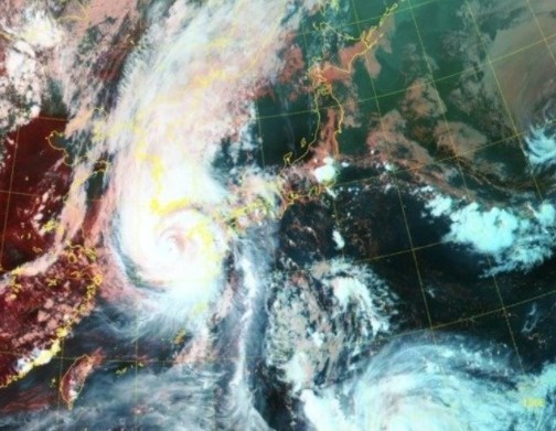 한반도를 통과하고있던 거대한 태풍 '하이선'으로 인해서 목장 지붕이 파손된 것을