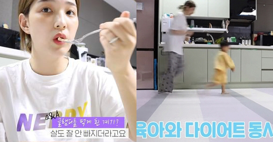 또한 율희는 "집에서 아기와 함께 운동을 했다. 놀아주면서 다이어트하는 방법이다"라며 첫째 아들 재율 군에게 "엄마랑 달리기 시합할까?"라고 말했다.