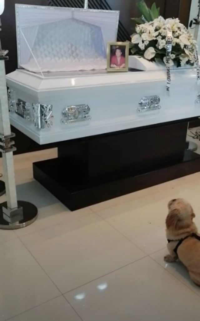 아직 주인과 작별인사도 제대로 하지 못한 이 강아지는 갑작스러운 주인의 죽음을 받아들이지 못했다.