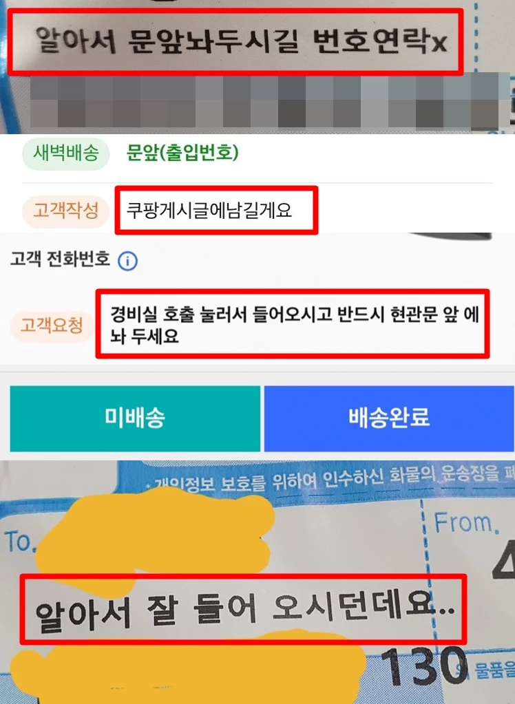 특히나 이들은 새벽 배송도 원하고, 집 문 앞 배송까지 원하지만 현관문 비밀번호는 기사가