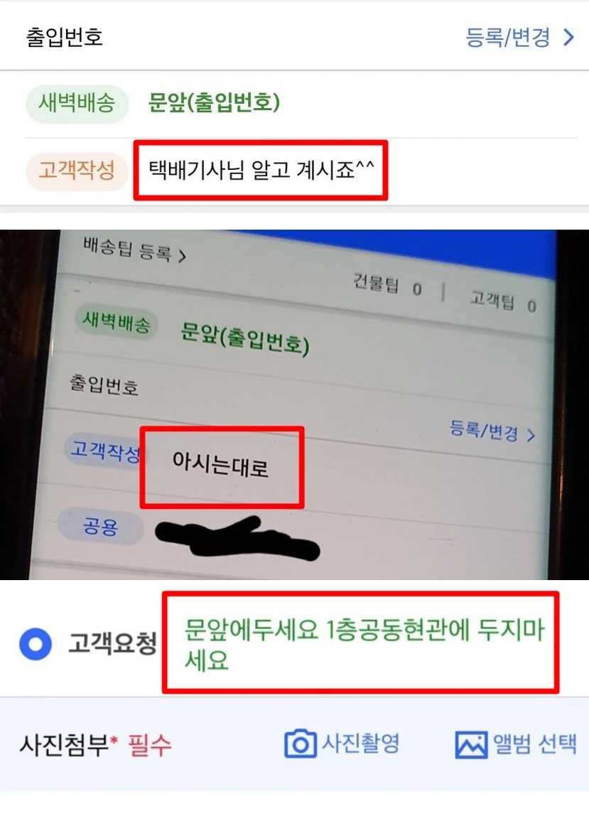 꼭 현관문 앞에 놔주세요'라고 요청하기도 했다.