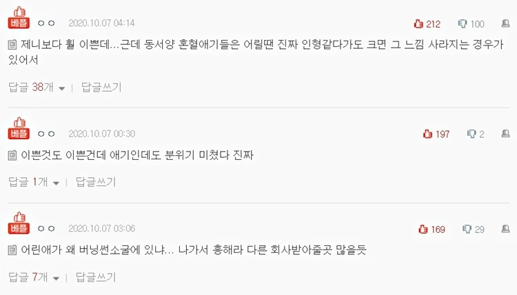 이 글에 네티즌들은 "제니 보다 훨씬 이쁜데... 근데 동서양 혼혈 아기들은 어릴 땐