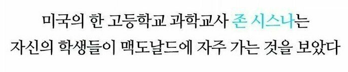한 온라인 커뮤니티 게시판에 ‘180일동안 맥도날드만 먹고 다이어트에 성공한 남자’ 라는 제목의 글 하나가 게시되며,