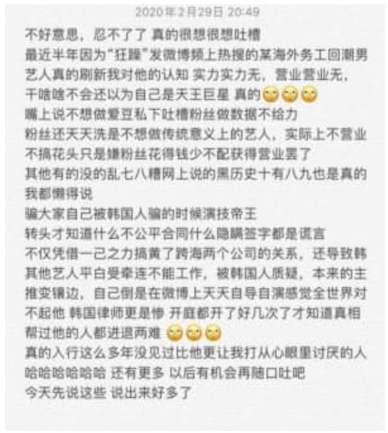 관계자가 라이관린을 향한 폭로글을 올려 주목을 받았다.