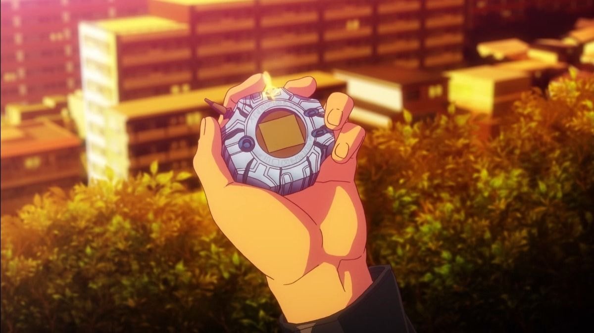 태일이(타이치)와 매튜(야마토)가 바라보고 있는 디지바이스에