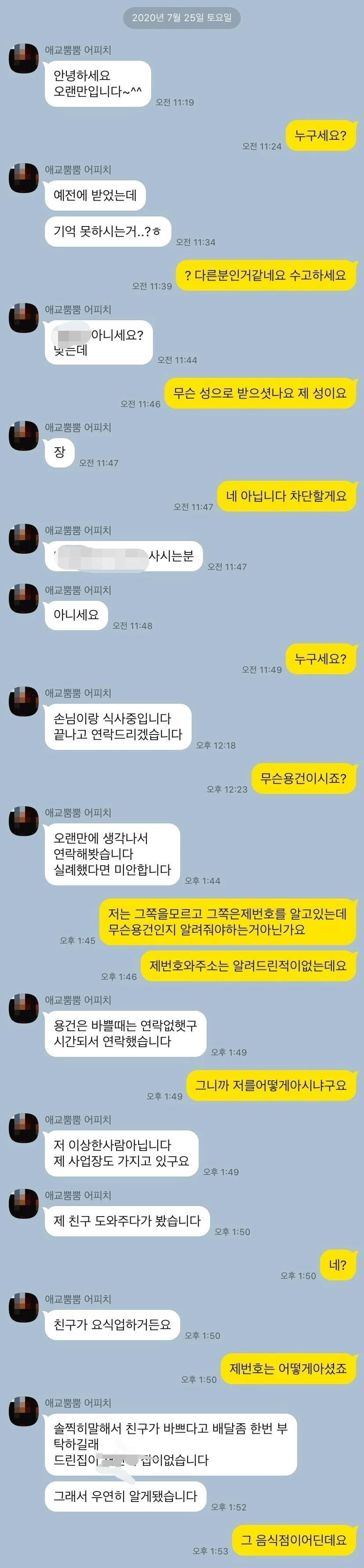 사람이어서 쉽게 차단할 수 없었다고 밝히며 무서움을 강조했다. 사연자는 신고를 위해 음식점의 위치를