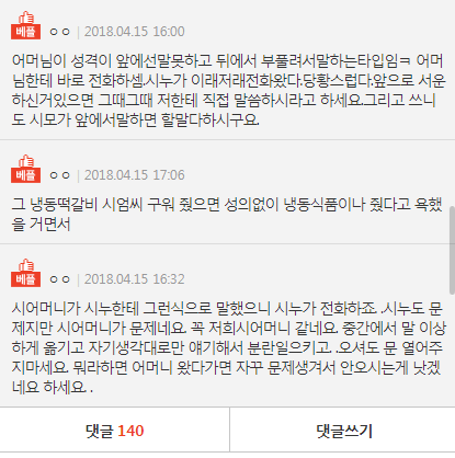 며느리는 원래 입도 닫고 시댁이라면 고분고분해야한다니 뭔가 억울하고 슬프네요