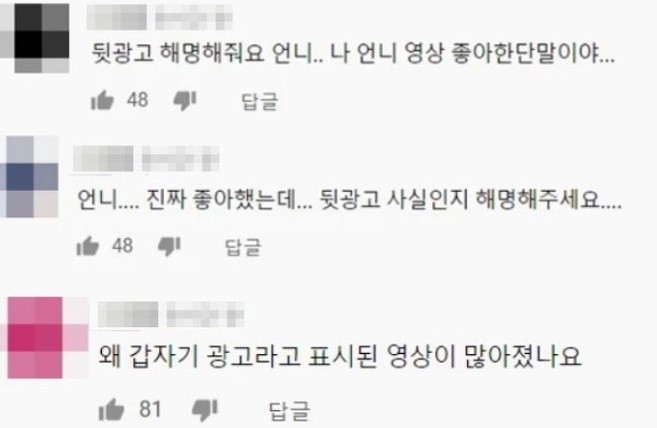 그녀는 "법이 바뀜에 따라서 예전 영상에도 '유료광고포함'문구를 넣어 수정해가고 있는중이다"라며