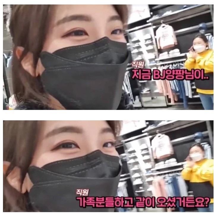영상을 올렸다. 영상 속 양팡은 가족들과 함께 쇼핑을 위해 푸마 부산 광복점을 방문했으며,