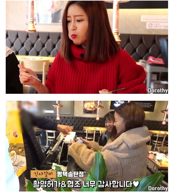 문제가 된 영상은 도로시가 효비와 명륜진사갈비를 직접 방문해서 돼지갈비를 먹었던 영상이다.