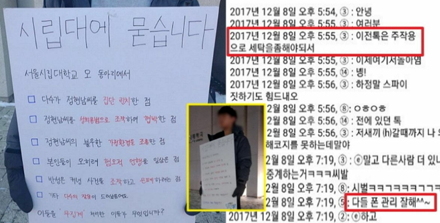 남학우를 상대로 성희롱 조작 협박을 한 여학우들은