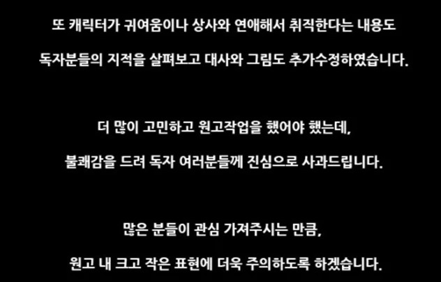 "원고 내 크고 작은 표현에 더욱 주의하도록 하겠습니다"라고 덧붙였다.