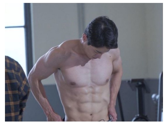 살을 뚫고 나올 듯한 삼각근과 대흉근, 그리고 에잇팩 복근과 함께 그의 치골은 섹시함 그자체이다.