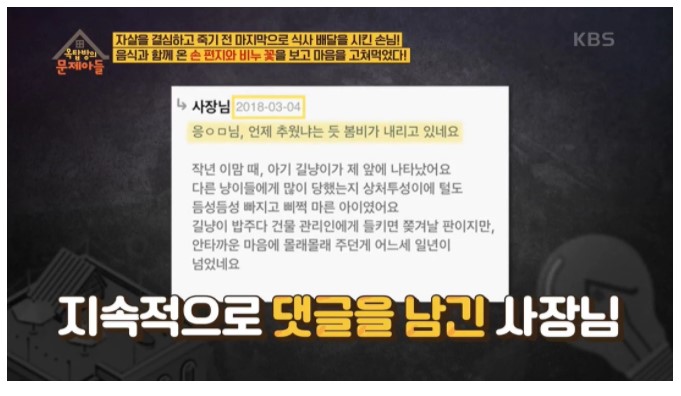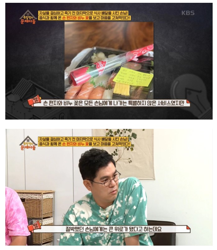 절박했던 손님에게는 큰 위로가 됐다고 한다. 그 후에 음식점 사장님은 혹시 손님이 다시