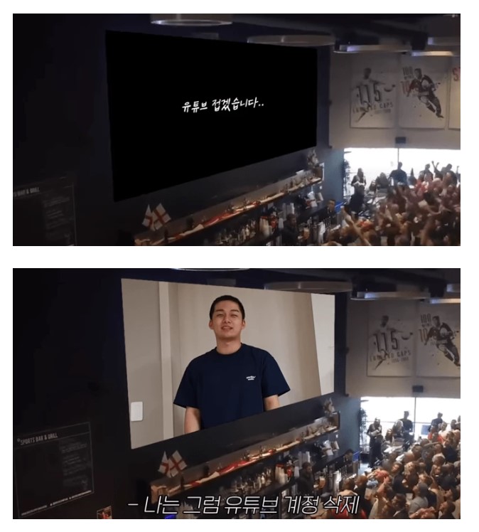 "유튜브 접겠습니다"라는 자막을 띄웠다.