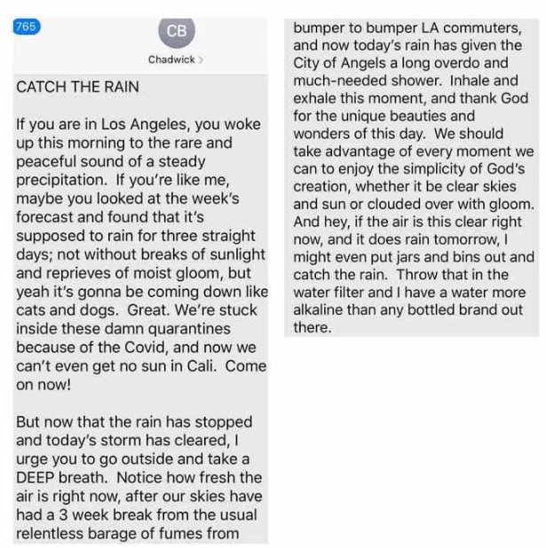 채드윅 보스만이 생전 남긴 마지막 문자 메시지를 의역한 글 전문이다.