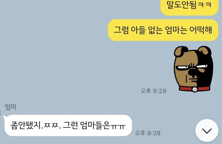 "너무 부럽다 ㅋㅋㅋㅋ 요즘 애들 어머니랑 카톡하는거 보면 너무 좋아보여"