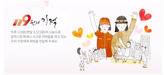 1인당 하루 119원씩을 모아 한 달에 3천570원을 기부하면 화재나 불의의 사고를 당해 생계유지가