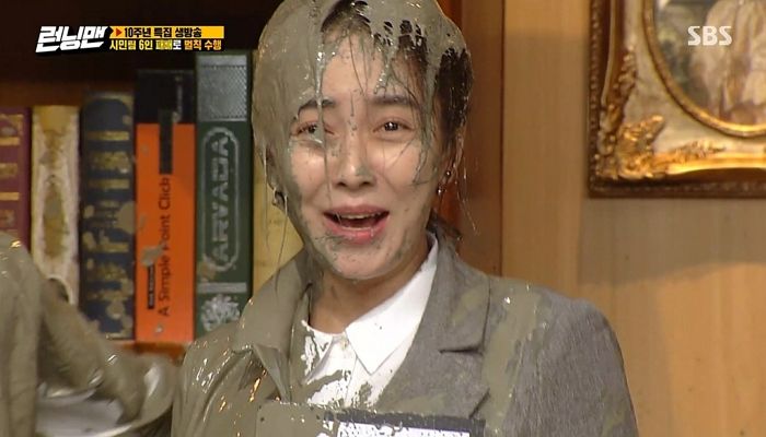 이윽고 머드팩이 이들의 머리 위로 떨어졌고 벌칙을 받은 멤버들은 진흙에 흠뻑 젖어 우스꽝스러운 모습으로 변해버리고 말았다.